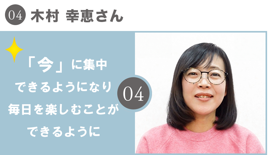 「今」に集中できるようになり、毎日を楽しむことができるようになりました