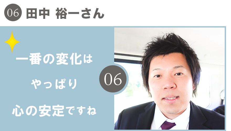 一番の変化はやっぱり心の安定ですね。